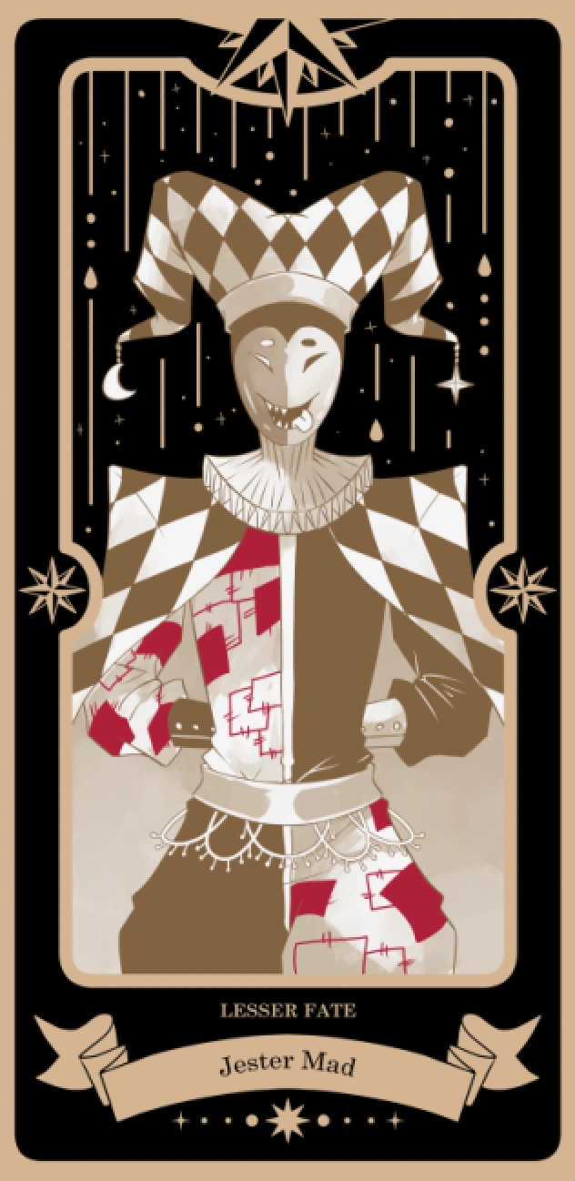 | “ | A mercurial Fate, Jester Mad symbolised happiness destined not to last. | ” |