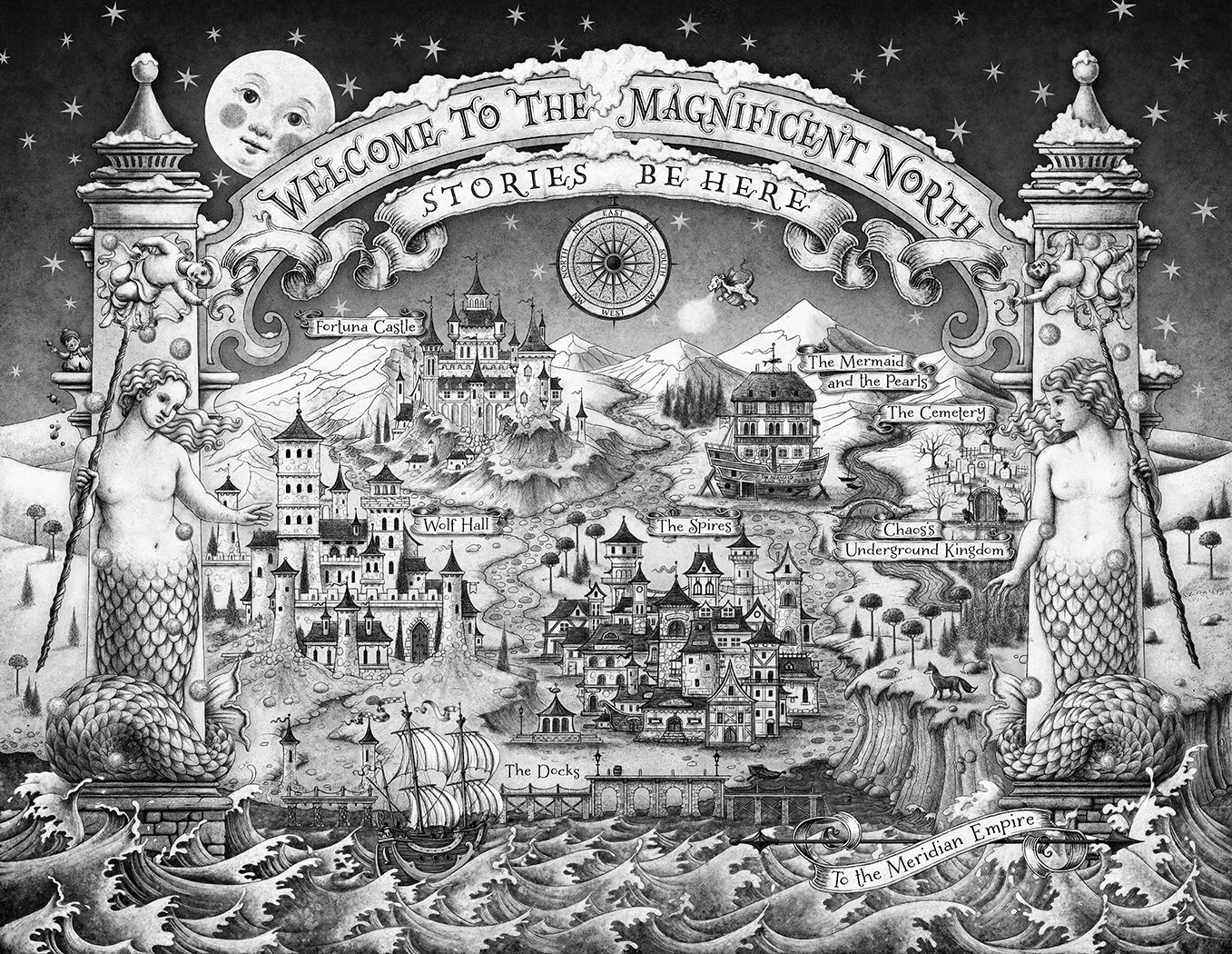 The Magnificent North is the empire located North of the Meridian Empire. It was first ruled by Wolfric and Honora Valor. Centuries later, it was ruled by Apollo Acadian, the crown prince. The capital city is Valorfell.
