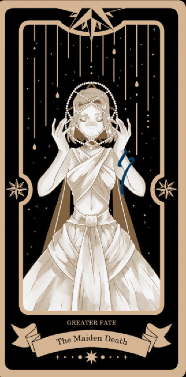 The Maiden Death warns people of losses to come. Her card predicts the loss of a loved one.[1]