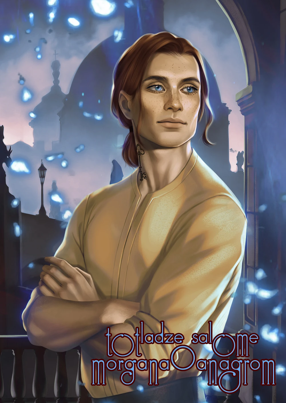 Tiberius has long, copper hair that he typically keeps tied back. His face is not sculpted, but soft and dusted in freckles that give him an impish appearance. He isn't particularly tall and has a slight build. He is said to look very differently from his brother, Apollo.